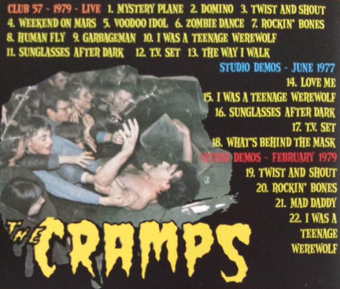 Killer set of 22 songs, including an incredible 13-song live set recorded in 1979 with professional mixes for WPIX-FM NYC with full sonic assault! Probably the best Cramps live performance and recording ever, with Bryan & Ivy's guitars complimenting each other most brilliantly, Nick Knox's drumming is superb, and Lux providing great vocals and between-song banter. The version of "Human Fly" is like an a-bomb exploding in your living room! The top-quality sound on the 8 demos that complete this swank CD have previously appeared on 1 or 2 reissues with inferior sound quality so get ready to hear them properly. Sixteen page booklet filled with unknown photos from 1977-1979 plus 2 great interviews from early & obscure magazines.